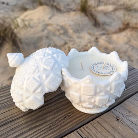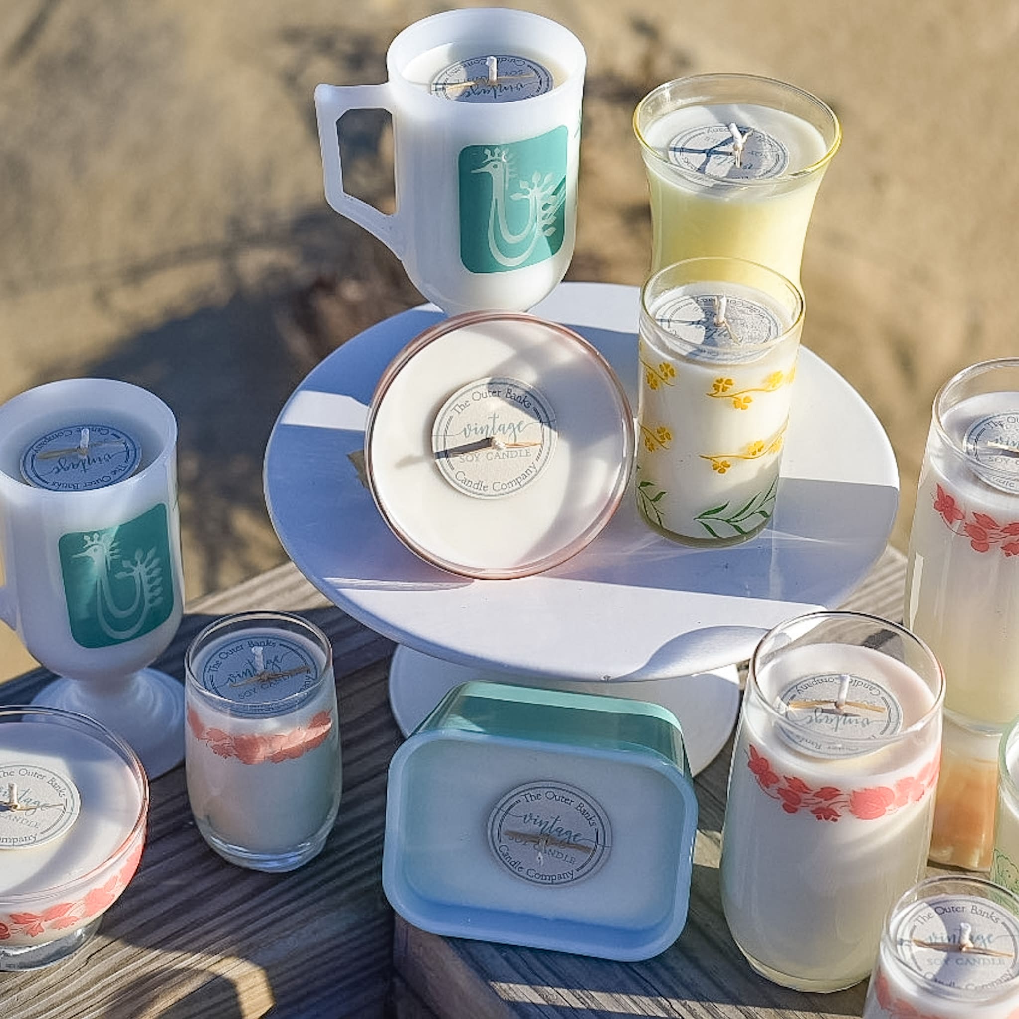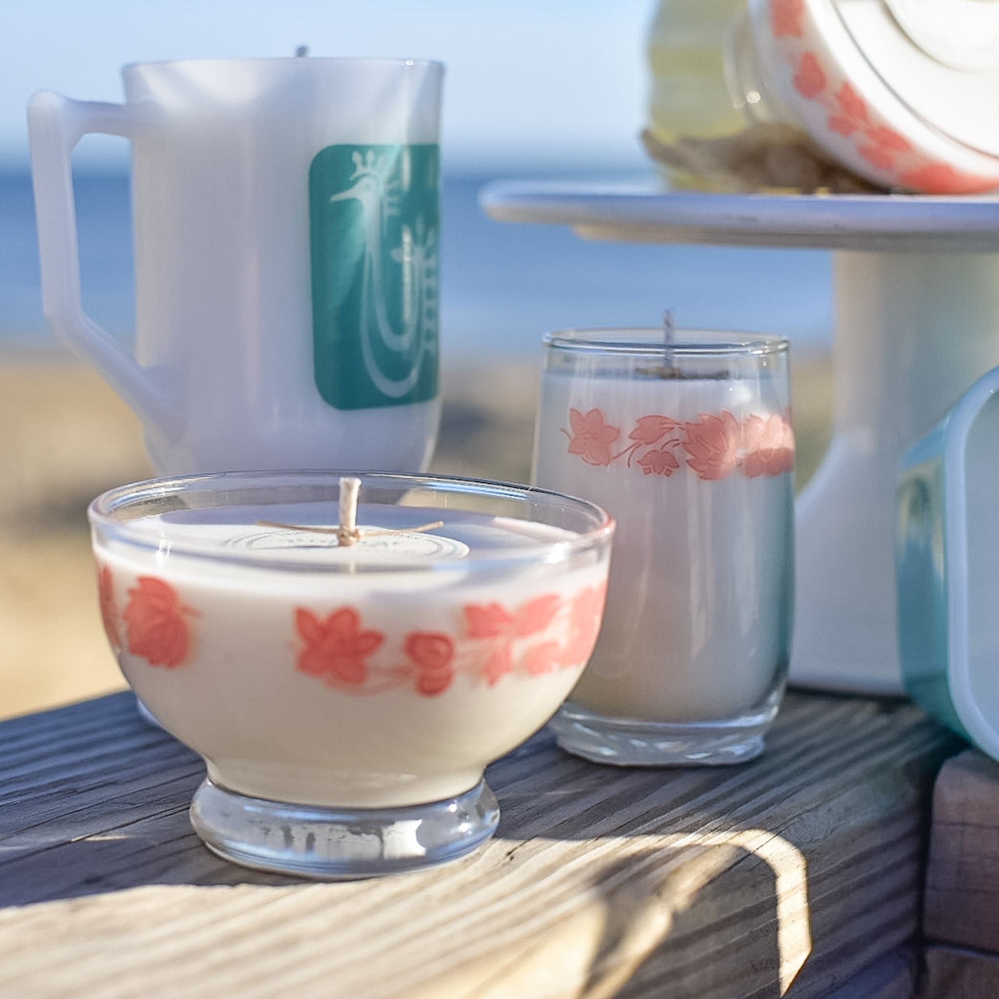 To reuse your vintage candle container: after the candle has burned down, scoop out any remaining wax with a spoon and discard. Then simply wash out the vessel with warm, soapy water and since soy wax is soft and water soluble, it’s that easy. Now you’re ready to enjoy your vintage treasure for years to come!