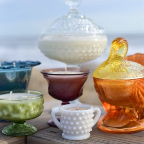 To reuse your vintage candle container: after the candle has burned down, scoop out any remaining wax with a spoon and discard. Then simply wash out the vessel carefully with warm, soapy water and since soy wax is soft and water soluble, it’s that easy. Now you’re ready to enjoy your vintage treasure for years to come!