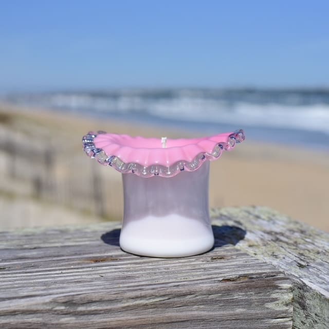 This Vintage Milk Glass Top Hat is a beauty with its bright pink ruffled rim! Perfect for special CANDY, small flowers or display!